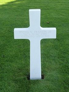 T/5 Irving V. Francis Jr. enlisted in Denver, Colorado on 19 June 1943.Source of information: André Koch, Raf Dyckmans, Terry Hirsch, www.abmc.gov, www.wwiimemorial.com, www.archives.gov - WWII Enlistment Record, www.fold3.com - WWII Draft Registration Cards, 1940 United States Federal Census