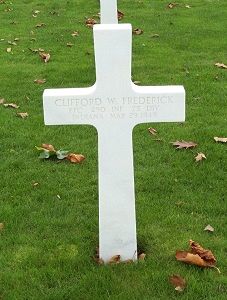 Pfc Clifford W. Frederick enlisted at Fort Benjamin Harrison, Indiana on 24 March 1944.Source of information: André Koch, Terry Hirsch, www.abmc.gov, www.wwiimemorial.com, www.archives.gov - WWII Enlistment Record, www.ancestry.com - 1930/1940 Census / 0.1 William Strouse Family Tree / Indiana Marriages, http://75thdivisiondad.com, Wilmington Daily Press Journal - 09 April 1945