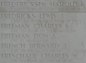 Surviving crew member reports indicate that 2nd Lt Freeman was last seen in the navigators compartment, already dead, killed instantly by flak schrapnel.