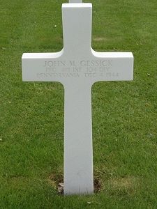 Pfc Gessick was wounded in action in the vicinity of Putzlohn, Germany on 23 November 1944 and taken prisoner and transferred to the Krieglazarett Knechtsteden near Dormagen, where he died on 4 December.