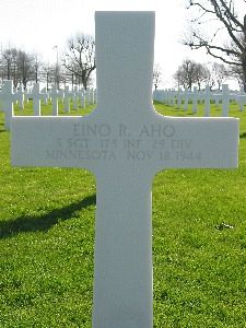 S/Sgt Eino R. Aho first buried at Temporary American Military Cemetery Margraten, Netherlands Block B, Row 11, Grave 274.