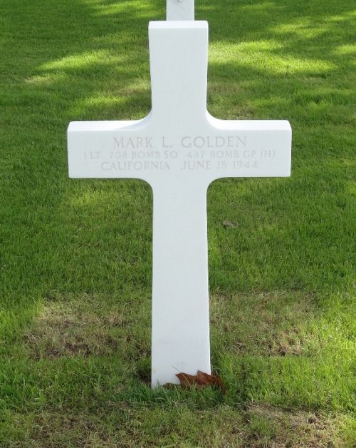 Source of information: Peter Schouteten, www.abmc.gov, www.wwiimemorial.com, www.findagrave.com, www.fold3.com - MACR, www.ancestry.com - 1930/1940 Census / California Birth Index, Lt. Mark L Golden: A Case Study in World War II Research - Mary Roddy