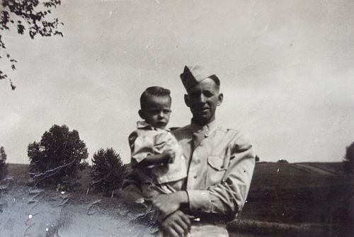 Pvt Kenneth L. Gorden enlisted at Camp Dodge, Iowa on 24 March 1944.One photo shows Pvt Gordon with his little nephew Eddie.