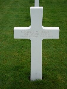 Sgt George W. Hamer was a metal worker behore he enlisted in Providence, Rhode Island on 29 April 1942.Source of information: Leo Minne, Astrid van Erp, www.abmc.gov, www.wwiimemorial.com, www.archives.gov - WWII Enlistment Record, www.ancestry.com - 1935-1940 Census / Headstone and Inscription Record, www.89infdivww2.org