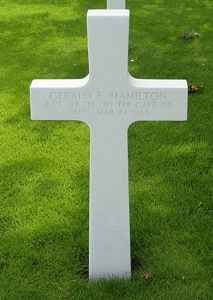 Gerald E. Hamilton graduated from Martel High School in 1937. He was employed by the North Electric Company of Galion and later by the Ohio Injector Company of Wadsworth.He enlisted in Cleveland, Ohio on 14 October 1941 and transferred to the Air Corps on 2 January 1943. He was overseas in August 1944,