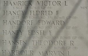 Waist gunners reported that when they abandoned ship, that the tail guns were badly mutilated and that there was a bundle on the tail gunners catwalk wich they took to be his kitbag. However later they remembered that S/Sgt Haney had not taken his kit bag with him on that mission and therefore it was assumed that it was himself. At the time of abondoning ship, gunners reported that they were under attack from the rear by about a dozen fighters. They therefore feel that S/Sgt Haney didn't have a chance. The writer was unable to reach the rear of the plane and therefore had to rely on this report from other men of the crew who were nearer to this position than he.