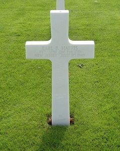 Pvt Earl B. Harris enlisted in Newark, New Jersey on 29 December 1943. He was sent overseas in December 1944.According to an article in The News of 24 August 1945 Pvt Harris was killed in a motor accident while driving a truck on an organizational move from Willebroek, Belgium to Lille, France.