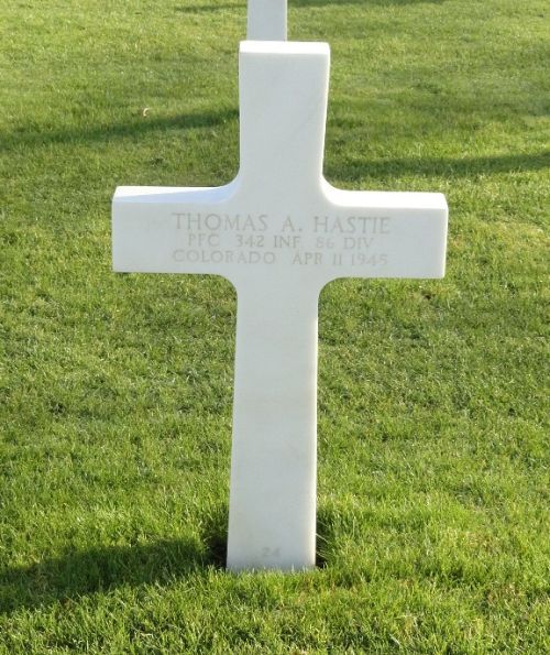 Pfc Thomas A. Hastie was a student at the West High School, Denver Colorado.He was a member of the Camera and the Service Club.