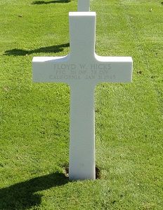 Pfc Floyd W. Hicks graduated from Moscow High School in 1939. He was employed at the Consolidated Shipyard Wilmington California before he enlisted in Los Angeles, California on 22 March 1943.He was awarded the Bronze Star Medal posthumously. The citation cited: Heavy machine gun fire stopped the advance of the platoon to which Pfc Hicks was assigned. When an American soldier attempted to capture two enemy soldiers holding up their hands in an attitude of surrender, he was shot. Pfc, seeing this action, single-handedly assaulted the position, firing his BAR [Browning Automatic Rifle] from the hip as he advanced. After advancing 75 yards he was fatally wounded by the dense fire. His heroic actions and great personal courage inspired the remaining men of the platoon to initiate an aggressive assault on the enemy and are in accordance with the highest military traditions
