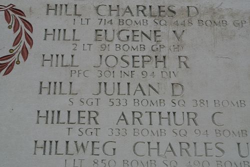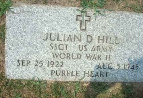 S/Sgt Julian D. Hill attended college and was employed at DuPont Company in Seaford, Delaware.He joined the Air Corps of the U.S. Army Reserve in Baltimore, Maryland on 22 September 1942 and was sent overseas in April 1944.
