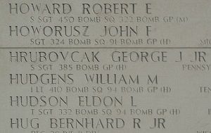 S/Sgt George J. Hrubovcak, Jr. graduated from Lansford High School in 1939 and enlisted in Allentown, Pennsylvania on 10 August 1942. He received basic training at Keesler Field, Mississippi. From there he was transferred to Fort Myers, Florida, where he attended the gunnery school and then studied radio at Salt Lake City, Utah.He had been promoted to the rank of Sergeant following graduation 6 March 1943 from the Lowry Field Armament School in Denver, Colorado.