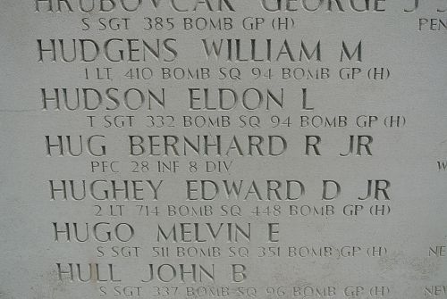 Pfc Bernhard R. Hug Jr. attended high school for one year and was employed at Sheboygan Distributing Company.He enlisted in Milwaukee, Wisconsin on 11 July 1941.