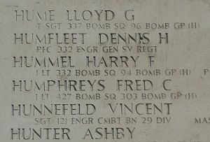 T/Sgt Lloyd G. Hume enlisted in March Field, Riverside County, California on 17 January 1942.The plane was last seen over the North Sea. They had sufferd continuous fighter attacks which set the plane on fire. Six crew members bailed out at about 5000 feet over the North Sea as six parachutes were seen in the air. Only the bombardier 1Lt Lawrence R. Wolford survived.