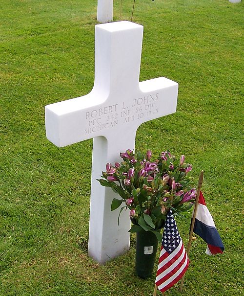 Pfc Robert L. Johns enlisted in Kalamazoo, Michigan on 19 February 1942.He went overseas around March 1945. Before entering the service he was engaged in farming.