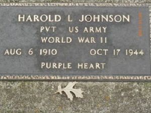 Pvt Harold L. Johnson worked on a farm before he enlisted in Camp Dodge, Herrold, Iowa on 23 March 1944.He is remembered at the Oakland Cemetery, Peterson, Clay County, Iowa.