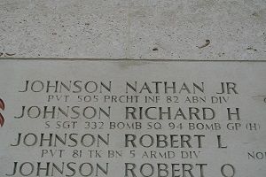 Pvt Nathan Johnson Jr. attended Kermit High School.He enlisted at Camp Joseph T. Robinson in Arkansas on 23 March 1943.
