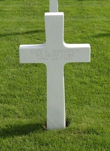 Pfc Guy V. Johnston enlisted in Camp Dodge Herrold, Iowa on 15 June 1943. He classified to be a teacher at the Armored School at Fort Knox, Kentucky on 25 April 1944.His mother, Gladys Johnston married Edward A. Knight on 20 May 1926 and Guy was named after his stepfather until his mother divorced him. In 1930 Guy, his mother and brother Merle lived with their grandmother, Amanda Ella (Moore) Johnston in Madison, Iowa. His mother remarried with Franklin Andrews but was divorced in 1940. All the children were named Andrews but at the time of his enlistment, Guy's last names was changed in Johnston.