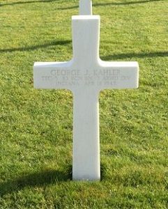 T/5 George J. Kahler was a farmer before he enlisted in Indianapolis, Indiana on 14 November 1942. He was overseas for fifteen months when he was killed.He died of wounds, received in action from a sniper earlier in the day.