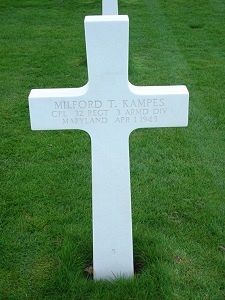Cpl Milford T. Kampes was a welder before he enlisted at Fort George G. Meade, Maryland on 16 June 1944.Source of information: Raf Dyckmans, Terry Hirsch, www.abmc.gov, www.wwiimemorial.com, www.archives.gov - WWII Enlistment Record, www.ancestry.com - Family Tree / 1940 Census, http://cgsc.contentdm.oclc.org - After Action Report 32nd Armored Regiment