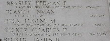 T/Sgt Eugene M. Beck Calumet High School, Wilson City college and Fox Secretarial College before he enlisted on 9 March 1942.The primary target was Bremen but due to cloud cover, a ship convoi was attacked as target of opportunity. The aircraft was shot down by enemy fighter and had to ditch.