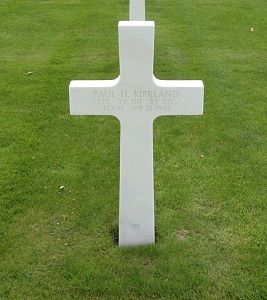 Pfc Paul H. Kirkland enlisted at Fort Sam Houston, Texas on 11 September 1943.He was awarded the Bronze Star Medal. The citation cited: "When the heavy machine gun platoon was halted in its advance on Gey, Germany, by the fire of two enemy snipers in some buildings, Pvt Kirkland and two comrades worked their way forward to where they could bring fire on the enemy. The snipers were called upon to surrender. They answered with a burst of fire which killed on of the companions and wounded the other. Pvt Kirkland killed one of the snipers and, although wounded, forced the other to expose himself to the first of the American platoon. His courage and heroic devotion to duty reflect great credit upon himself, and his actions are in keeping with the finest traditions of the United States."