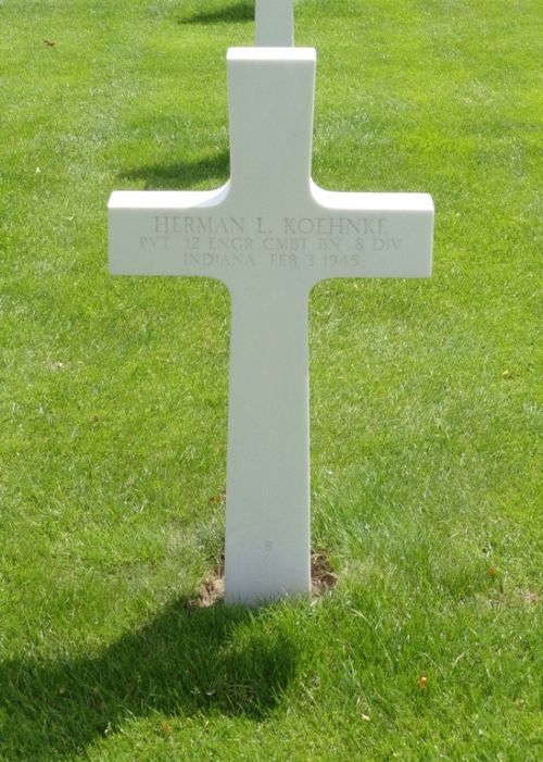 Pvt Herman L. Koehnke enlisted in Indianapolis, Indiana on 13 July 1943. He was discharged from a hospital in England after recovering from a broken ankle.Source of information: Peter Schouteten, Astrid van Erp, www.abmc.gov, www.findagrave.com, www.wwiimemorial.com, www.archives.gov - WWII Enlistment Record, www.ancestry.com - 1930 Census / Meeks Folk Logan Koehnke Family Tree, www.newspapers.com - The Kokomo Tribune