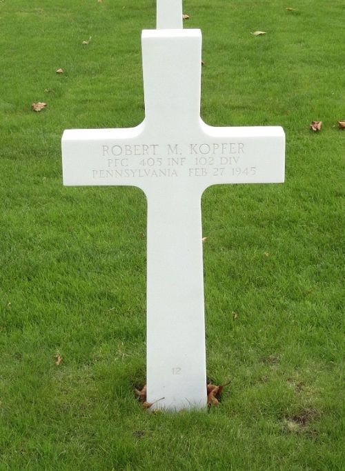 Pfc Robert M. Kopfer was a clerk at the Bethlehem Steel Co.He enlisted in New Cumberland, Pennsylvania on 29 April 1944 and was sent overseas on 27 October 1944.