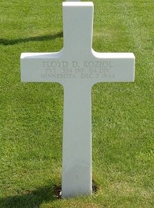 Pvt Floyd D. Koziol enlisted in Fort Snelling, Minnesota on 8 March 1944 and went overseas as an infantryman in October. His parents both had died and Pvt Koziol made his home with his aunt and guardian, Mrs. Philip Kuharski at Montrose, Minnesota. Prior to joining the service, he was employed by Northwest Autoatic Products Corp.