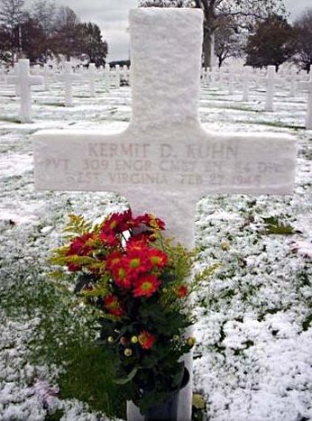 Pvt Kermit D. Kuhn graduated from Bayard High School where he was captain of the basketball and baseball teams and won the Bayard High School Athletic Award for his sportsmanship and athletic ability.He was a motorman before he joined the Regular Army on 20 June 1940 and was sent overseas in September 1944.