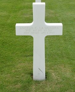 Pvt Angelo C. La Quadra enlisted in Newark, New Jersey on 14 September 1944.Source of information: Peter Schouteten, Terry Hirsch, www.abmc.gov, www.wwiimemorial.com – Barnara Cozzi, www.archives.gov – WWII Enlistment Record, www.ancestry.com - U.S., Headstone and Interment Records for U.S. Military Cemeteries on Foreign Soil / 1940 Census, WWII Draft Cards