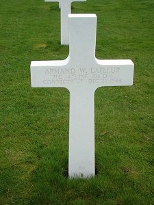 Pfc Armand W. LaFleur enlisted in Hartford, Connecticut on 2 June 1941.He was taken prisoner on 21 December 1944 and died a week later. The exact location is not known.