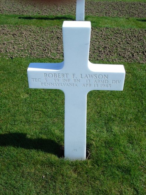 T/5 Robert F. Lawson enlisted in Philadelphia, Pennsylvania on 5 January 1943.Source of information: Danny van der Groen, Astrid van Erp, www.abmc.gov, www.wwiimemorial.com, www.archives.gov - WWII Enlistment Record, www.ancestry.com - 1930 Census, http://cgsc.contentdm.oclc.org, www.fold3.com - WWII Draft Card