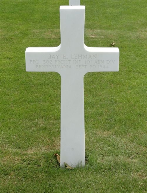 Pfc Lehman enlisted on 10 July 1942 and was sent overseas in August 1943. He participated in the D-Day landings on 6 June 1944.He was first buried at the Temporary American Military Cemetery of Son, The Netherlands.