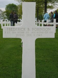 2nd Lt Frederick B. Robinson attended the University of Texas.He received his wings in May 1943 and had been overseas since November of that year.