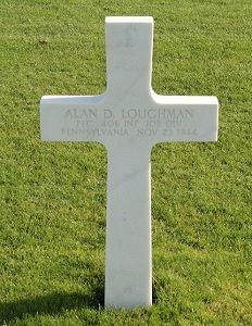 Pfc Alan D. Loughman enlisted in Pittsburgh, Pennsylvania on 29 January 1944.For four years, Loughman was employed by the Jessop Steel Company and was prominent as a baseball pitcher for the Jessop team and for the Washington team in the County League. He received his basic training at Camp Swift, Tex., and was transferred to Fort Dix, N.J., before going overseas with an infantry division about September 17.