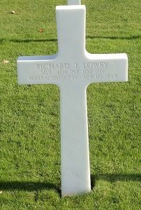 Sgt Richard J. Lowry attended Framingham High School and was employed at Lombard Governor Company.He enlisted in Boston, Massachusetts on 9 April 1943 was sent overseas in September 1944.