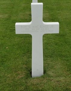 Pfc Roy S. Mac Elwee Jr. graduated from Upper Darby High School. He spent one term at the University of Pennsylvania and two terms at Carnegie Institute of Technology.He joined the U.S. Army Reserve in New Cumberland, Pennsylvania on 16 May 1944.