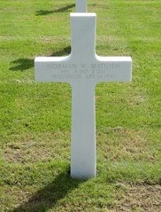 Norman Madden enlisted on 22 June 1944 and was sent overseas on 19 December 1944.Norman W. Madden is remembered at St. Patrick's Cemetery in Mauston, Juneau County, Wisconsin.