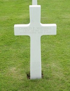 S/Sgt Charles E. Marshall enlisted in Washington, Pennsylvania on 17 February 1941 and was employed by the South West Penn Pipe Lines before entering the service. He was a member of Co. H, 110th Infantry when he was called into service and was still in it at the time of his death. He had been overseas two years when he was reported missing after an engagement in Luxembourg and Belgium. S/Sgt Marshall had been awarded the Purple Heart for wounds received in Germany on 6 October 1944. He received the American Legion Gold Star Citation posthumously.Source of information: Danny van der Groen, Astrid van Erp, Carla Mans, www.abmc.gov, www.wwiimemorial.com, www.archives.gov - WWII Enlistment Record, www.ancestry.com - Veteran Compensation Application file
