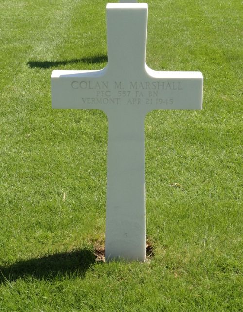 Pfc Colan M. Marshall enlisted in Rutland, Vermont on 7 June 1944.In the history of the Battalion, the following account can be found: