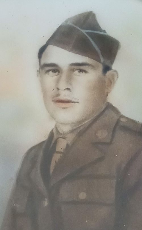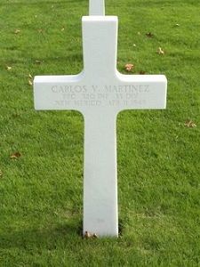Pfc Carlos V. Martinez enlisted at Fort Bliss, El Paso, Texas on 19 April 1944.Source of information: Raf Dyckmans, Terry Hirsch, www.wwiimemorial.com, www.archives.gov - WWII Enlistment Record, www.coulthart.com/134, www.ancestry.com - Headstone and Interment Record / New Mexico, WWII Record, www.fold3.com - WWII Draft Card, 1930 Census