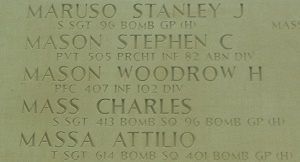 Pfc Woodrow H. Mason enlisted in Huntington, West Virginia on 19 November 1942.Source of information: André Koch, Terry Hirsch, www.abmc.gov, www.wwiimemorial.com, www.archives.gov - WWII Enlistment Record, www.ancestry.com - 1920/1930/1940 Census / Barker Family Tree
