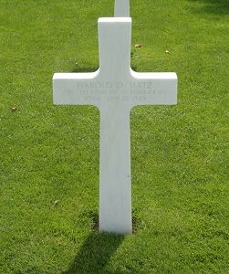Cpl Harold D. Matz enlisted in Jefferson Barracks, Missouri on 2 February 1943 and was sent overseas on 15 December 1944.Just after 12:00 the airplane was hit by flak and started to spin out of control. The pilot, Eugene E. Dasso, managed to level the plane and two parachutes were seen leaving the plane. After a second parachute was seen the plane started again to spin out of control and crashed.