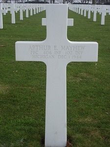 Arthur E. Mayhew worked at the Dodge Motor Company prior to entering the service. He went overseas in March 1944.His father was killed in WWI on 4 September 1918 in France.