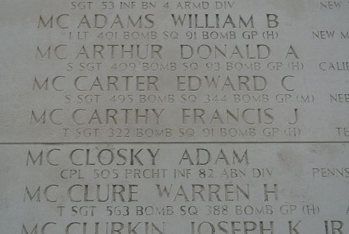 Note: The mission took place on 8 April 1945. The date of death of T/Sgt Mc Carthy in incorrectly stated in the records of ABMC. To keep this agreement, this incorrect date is also mentioned here