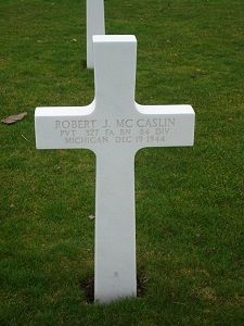 Pvt Mc Caslin attended Southeastern Junior High School and Central High School.He enlisted in Berrien Springs in August 1943 and was sent overseas in September 1944.