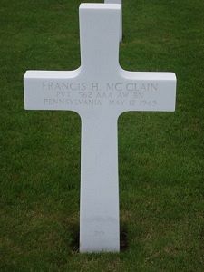 Pvt Francis H. Mc Clain enlisted in Erie, Pennsylvania on 21 January 1943.Source of information: Raf Dyckmans, Astrid van Erp, www.abmc.gov, www.wwiimemorial.com, www.archives.gov - WWII Enlistment Record http://cgsc.contentdm.oclc.org – History of the 562nd AAAWB, www.ancestry.com - Veteran Compensation Application File