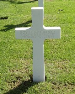 Silver Star Citation for gallantry in action on 6 October 1944 in Germany: “On 6 October 1944, Company “H”, 41st Armored Infantry Regiment, attacked northeast from Ubach, Germany, with the mission of securing the town of Waurichen. At 1800 the Platoon Leader of the First Platoon was killed and the Platoon Sergeant was wounded. T Sgt Mc Cormick, who was then acting as Platoon Sergeant of the Third Platoon, was instructed to assume command of the First Platoon. Due to the loss of its leaders, the First Platoon had become badly disorganized. T Sgt Mc Cormick alternately crawled and ran from position to position unmindful of the dangerous enemy fire in order to reorganize the platoon, which was then situated in an open field just 200 yards from the enemy. Despite intense small arms and artillery fire, T Sgt Mc Cormick led his platoon forward until he was ordered to halt because of darkness. Due to T Sgt Mc Cormick’s exceptional leadership and disregard for his own safety, the First Platoon was reorganized and the attack was resumed at a very critical phase of the operation.”