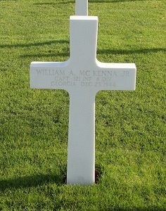 Capt. William McKenna graduated from Lanier High School with the class of 1927 and attended Mercer University.During the fighting on 8 July 1944 in the vicinity of La Haye du Puits, Capt Mc Kenna led companies of the 2nd Battalion forward to reestablish contact with 3rd Battalion. Surveying the enemy line, he perceived that hostile fire had ceased from a sector and moved forward to investigate. He advanced to a hedgerow which concealed a considerable force of German troops. Calling loudly for their surrender, Capt Mc Kenna was rebuffed when the German commander ordered his soldiers to open fire. Calmly, he secured a string of hand grenades and continued to advance within a few yards of the enemy where he destroyed the German strong point with hand grenades. For his actions, Capt Mc Kenna was awarded the Silver Star Medal for this action.