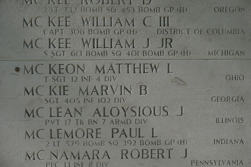 Following the end of the war, the American Graves Registration Command was tasked with investigating and recovering missing American personnel in Europe. They conducted several investigations in the Hürtgen area between 1946 and 1950 but were unable to identify Mc Keon’s remains. He was declared nonrecoverable on 15 December 1950.